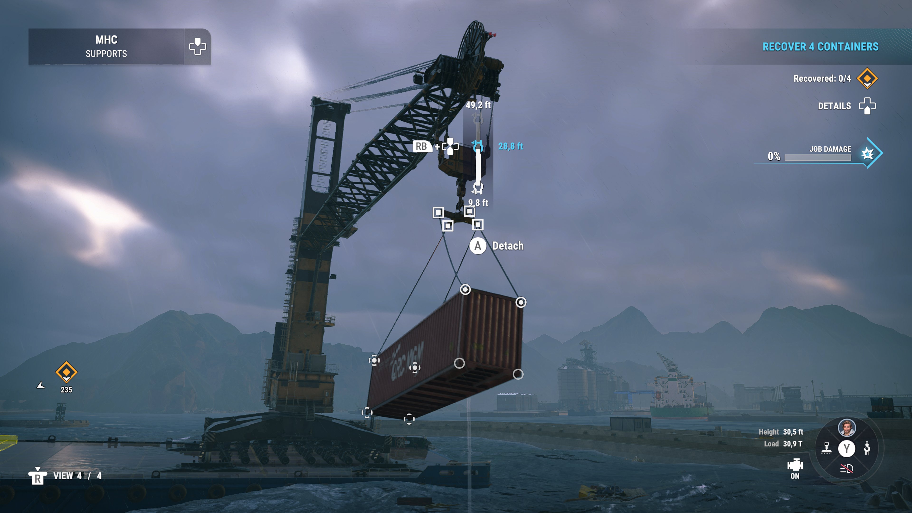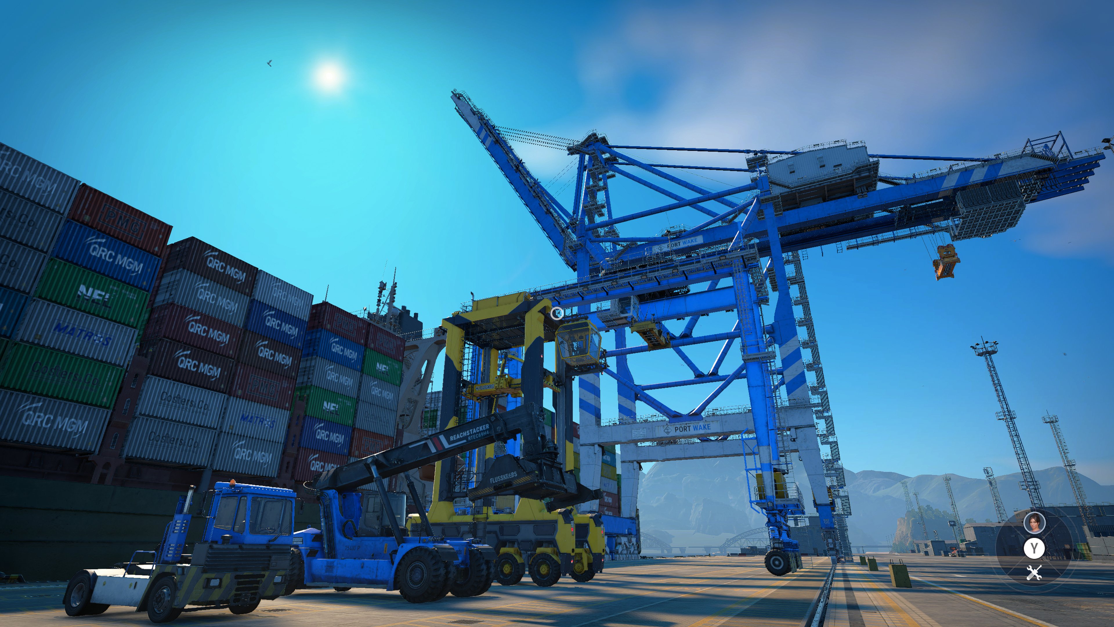 As a whole the various cranes & vehicles’ physics are spot on, believable, fun but challenging. You cannot, for instance, hurtle around a 90° corner in the Reach Stacker carrying a 40-foot container with its boom fully extended! (Don't ask me how I know.) Using multiple controls (shoulder buttons + stick directions & face buttons) at the same time will become second nature with this game, because unlike many construction machinery-type sims multiple simultaneous inputs are actually possible.