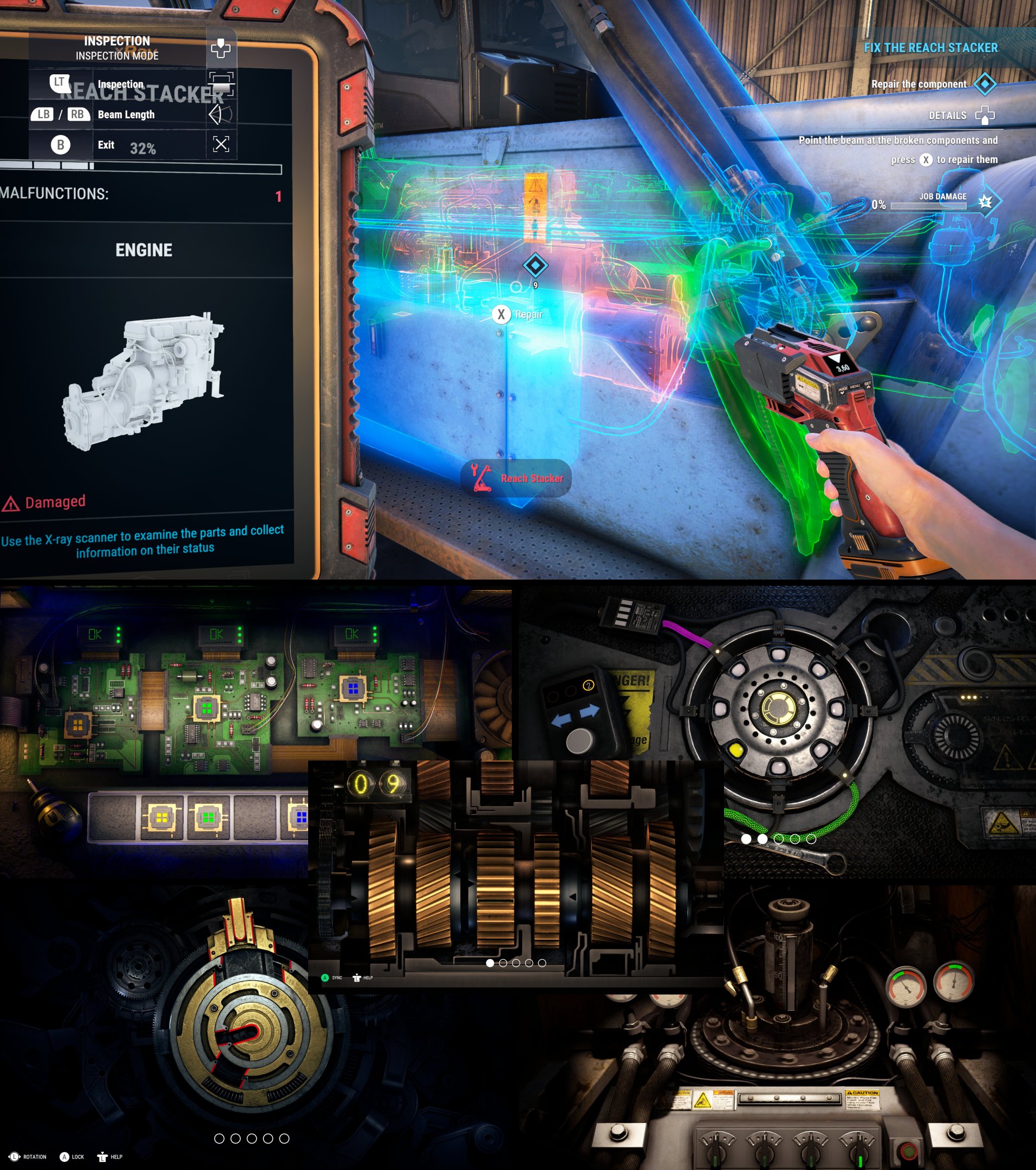 Periodically vehicles will break down or get damaged and you'll have to use a damage scanner to find the problem, and then repair it by completing one of the minigames (below)