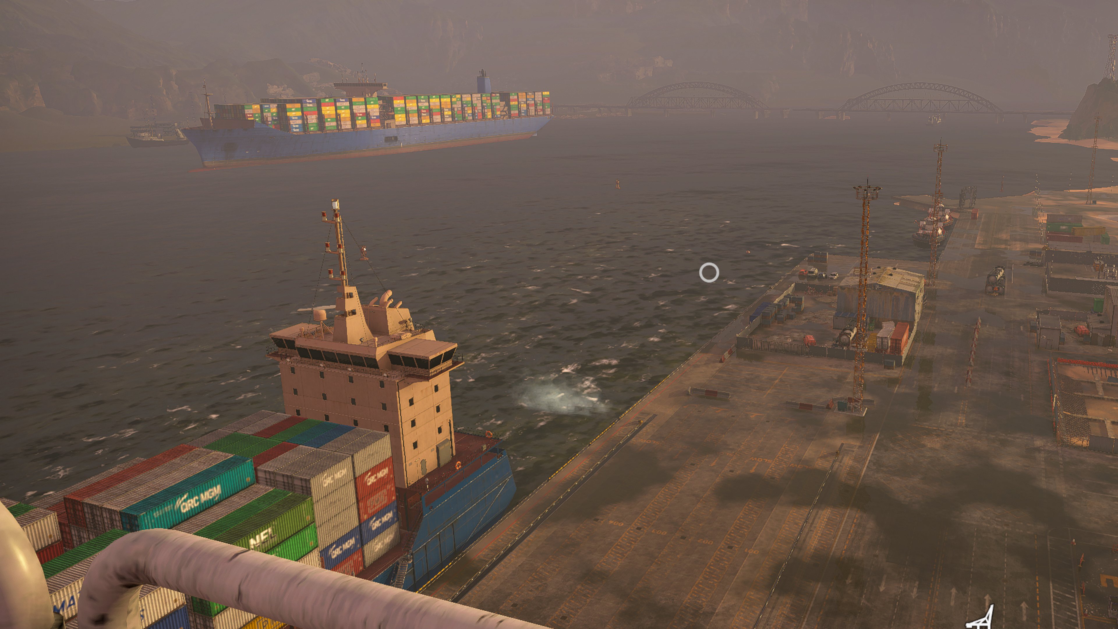 The water, whether it's the choppy sea, stormy rain or puddles in the container yard is exceedingly well done–apart from a lack of splashes when you dump something into the sea. Weirdly, the only visual issues we had are when on foot, where the frame rate gets slightly ‘swimmy’ and control suffers slightly.